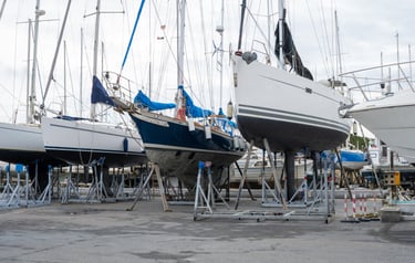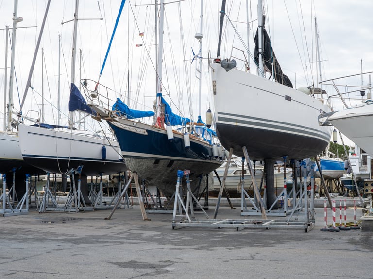 Il servizio di taccaggio del Cantiere Navale Fulghesu garantisce il corretto posizionamento dell’imbarcazione a terra tramite supporti regolabili e sistemi di sostegno adeguati.