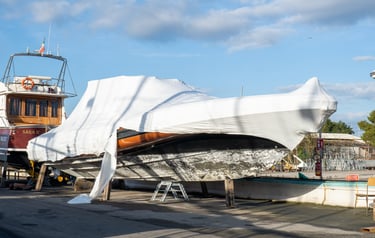 Applichiamo film termorestringente nautico su misura, sigillando completamente lo scafo e le sovrastrutture per proteggerli da agenti atmosferici, salsedine, polvere e raggi UV. La struttura viene installata con aperture di ventilazione controllata per evitare condensa e garantire la corretta conservazione degli ambienti interni.